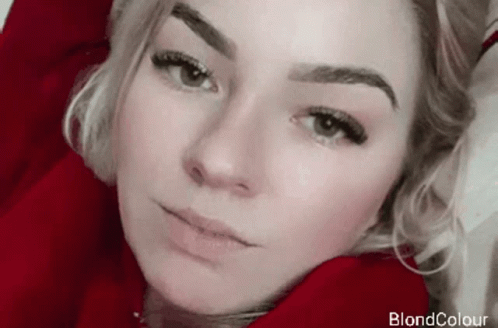 A blonde woman with makeup blinks slowly, with 'BlondColour' text visible in the corner.