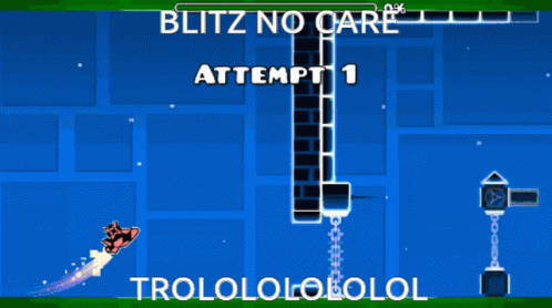 Gameplay of 'Blitz No Care' featuring the Trollface meme and 'TROLOLOLOLOLOLOL' text.