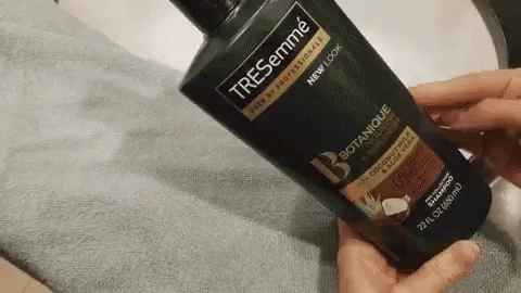 Person applies Tresemme blonde shampoo to wet hair, lathering it thoroughly for hair care.