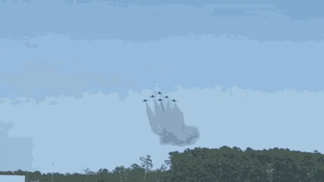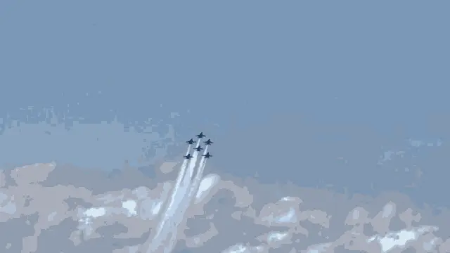 The Blue Angels Navy Jets perform a stunning aerial display, honoring Veterans Day with a 'Firebirds' formation.