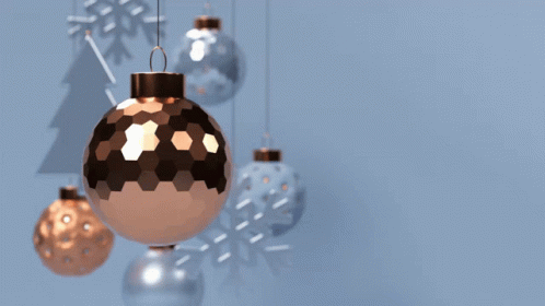 Festive Christmas greeting with hanging ornaments and a 'Merry Christmas & Happy New Year' message.