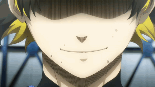 Blue Lock's Bachira Meguru shows an intense, wide-eyed smile and plays soccer with fierce determination.