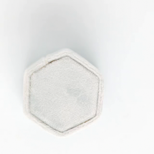Elegant marquise-cut blue gemstone ring with smaller stones, set in a rose gold band, revealed in a light grey hexagonal box.