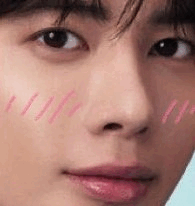 TXT's Kang Taehyun with a shy blush and a gentle smile, captured in a close-up moment.