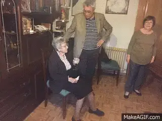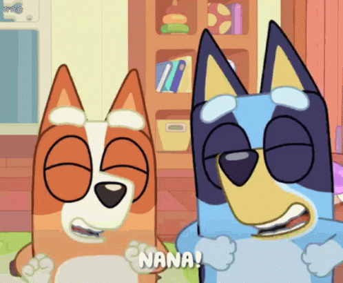 Bluey and Bingo excitedly video call their Nana Floss, who greets them with a smile and her pink glasses.