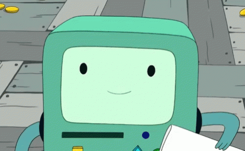 BMO, the adorable video game console from Adventure Time, blushes while holding a piece of paper.