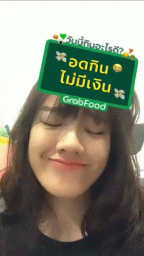 BNK48 member Phukkhom uses a GrabFood filter, making cute expressions about not having money for food.