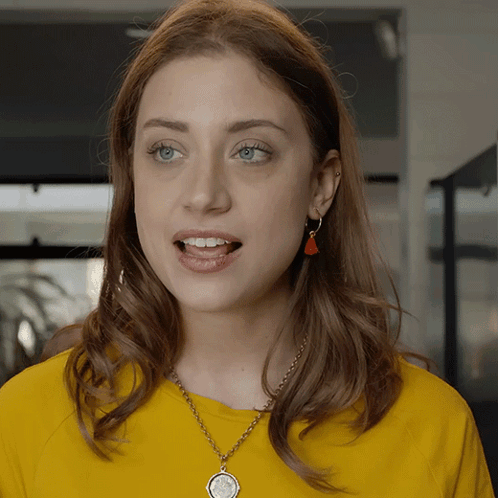 Tato Alexander reacts with an open mouth, then smiles, wearing a yellow shirt and coin necklace.