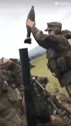 Soldier loading a mortar, followed by a Boca Senor FC25 video game win celebration.
