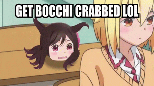 A crying anime girl's head, known as Bocchi, appears as a crab-like creature in a classroom, creating a 'Bocchi Crab' meme.