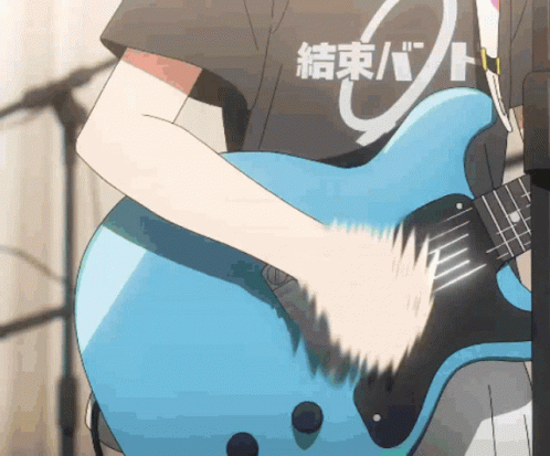 Kita Ikuyo from Bocchi The Rock! passionately plays her electric guitar on stage.