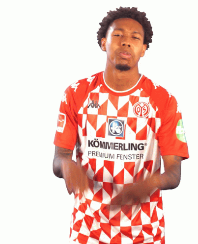 Jean Paul Boetius clapping and showing thumbs up in his red and white football jersey.