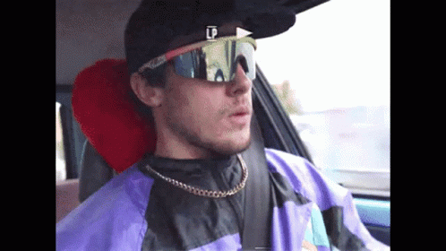 A man from Bohll Cluster, wearing sunglasses and an LP hat, presses a large 'SUPER FAST' button in a car.