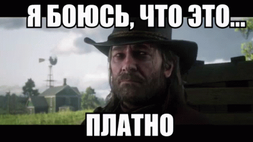 Arthur Morgan meme: 'I'm afraid it's paid' in Russian, expressing reluctance about a cost.