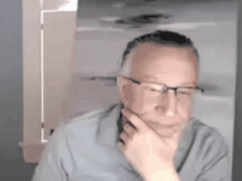 Boldrin Liberioltre, wearing glasses and a grey shirt, bursts into hearty laughter, holding his chin.