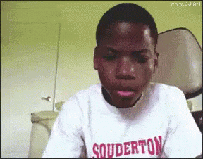 Young boy in a Souderton t-shirt reacts with wide eyes and a scared expression, reflecting the reality of bills.
