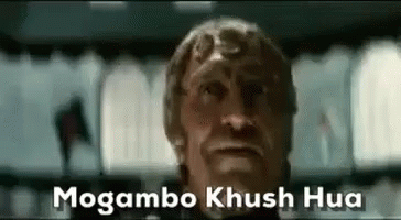 The iconic Bollywood villain Mogambo delivers his famous line, 'Mogambo Khush Hua' (Mogambo is happy).