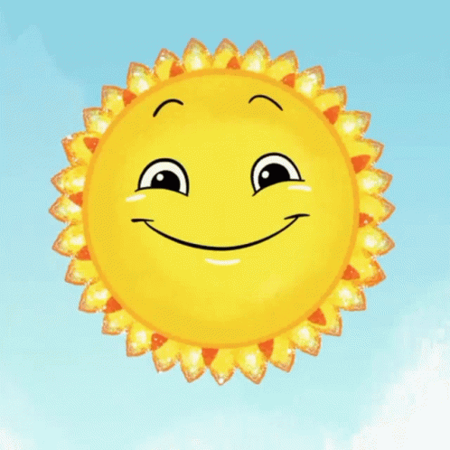 Um sol sorridente e brilhante com a mensagem 'Ei, Psiu! Acorda!' para desejar um feliz dia.
