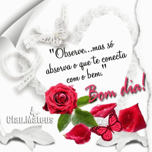 A beautiful greeting card featuring red roses and butterflies, with a message to observe and absorb only what is good. Good morning!
