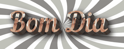 Animated 3D text displaying 'Bom Dia' (Good Morning) against a dynamic striped background.