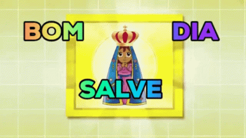 Animated depiction of Our Lady of Aparecida with the text 'Bom Dia Salve Aparecida' displayed.
