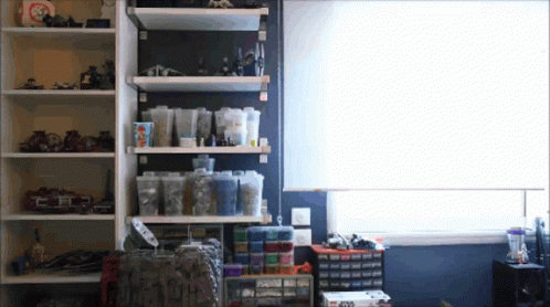 A person greets the viewer with 'Bonjour bonjour' in a room with shelves.