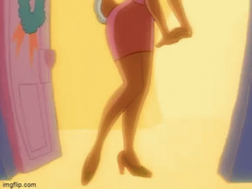 Fawn Deer from Disney's Bonkers poses playfully in a pink dress and bow in a brightly lit room.