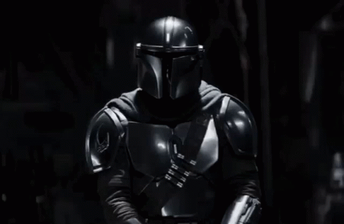 The Mandalorian, Din Djarin, dramatically ignites the Darksaber in a scene from The Book of Boba Fett.