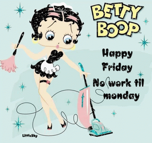 Betty Boop celebrates Friday with a vacuum cleaner, ready for the weekend.