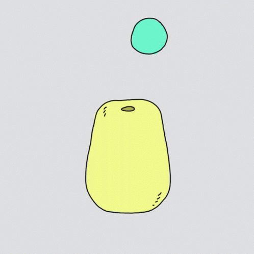 A yellow blob-like object 'boops' a teal oval, which then jumps inside.
