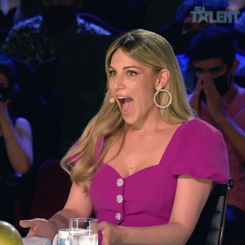 Edurne, a judge on Got Talent España, reacts with a dramatically shocked, open-mouthed expression.