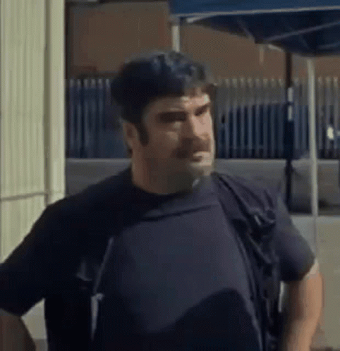 Boris Elio, a man with a beard and mustache, stands with hands on hips in an urban setting.