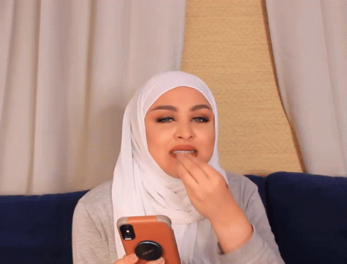 Lujain Glam makes a playful fly kiss gesture while holding her phone, showcasing her makeup.
