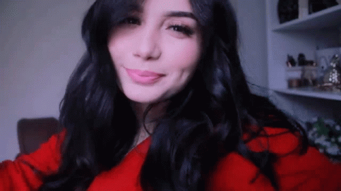 Yosr blows a kiss to the camera, with long dark hair, red lipstick, and red nail polish.