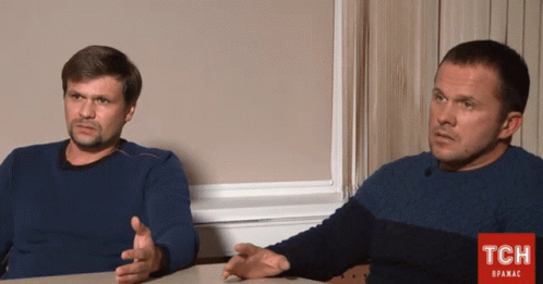 Boshirov and another man are seated at a table, likely during an interview or discussion, with a TCH logo visible.