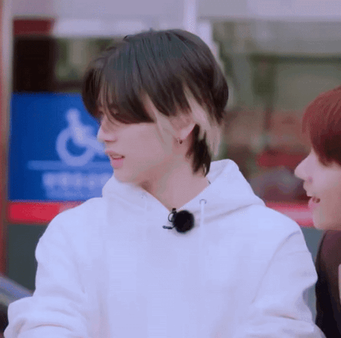 Boynextdoor's Taesan reacts with a shocked expression, scratching his head in surprise.