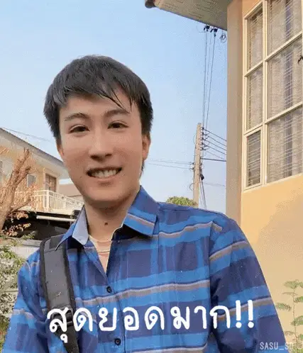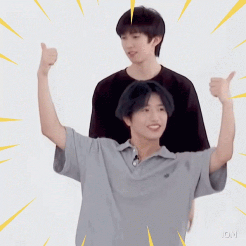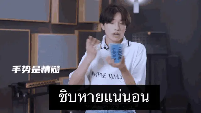 Boyuan from Into1 celebrates with arms raised, smiling, with the Thai caption 'Awesome'.