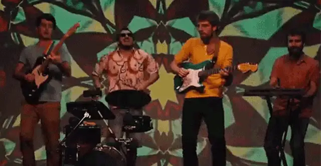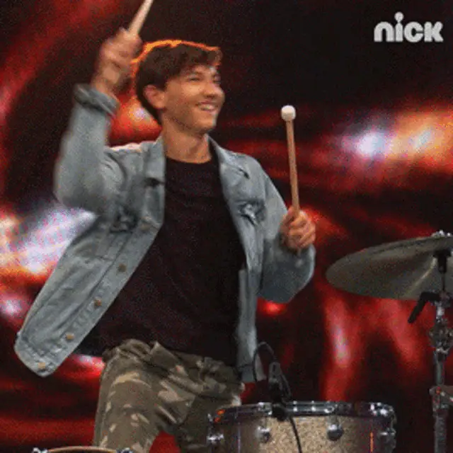 Bradliff Ccc energetically playing drums in a plaid shirt, with dynamic fiery and purple backdrops.