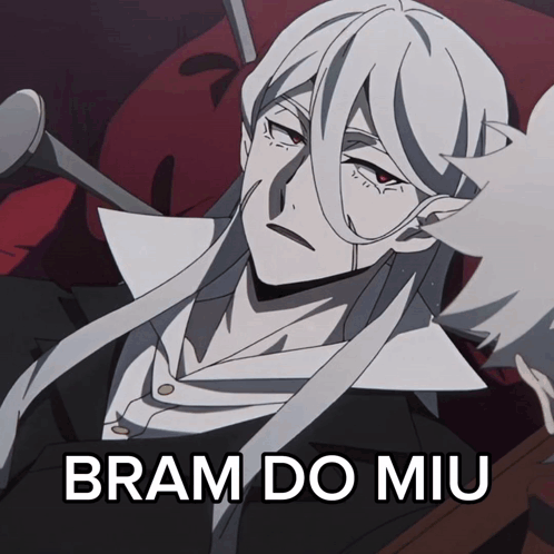 Anime character Bram from Bungou Stray Dogs in a coffin with the text 'BRAM DO MIU'.