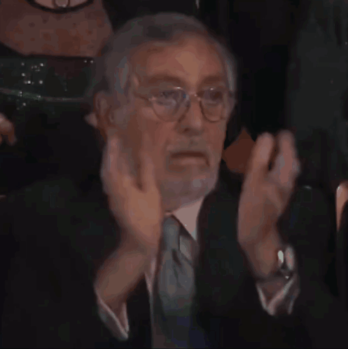 Luis Brandoni, actor and politician, claps enthusiastically in the audience at the prestigious Martin Fierro Awards.