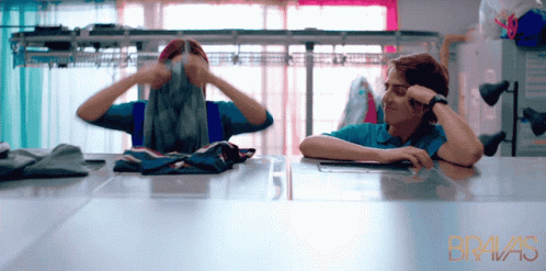 Audri Nix and Daniel El Travieso look exhausted while working at a laundromat in a scene from Bravas, directed by Jessy Terrero.