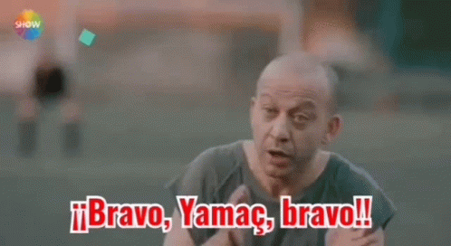 Aliço enthusiastically exclaims 'Bravo, Yamaç, bravo!' with outstretched arms, celebrating Yamaç's actions.