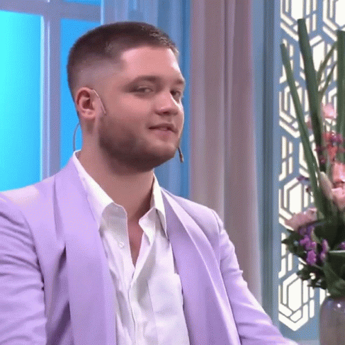 Tomás Kirzner claps enthusiastically, wearing a stylish purple blazer and white shirt in a TV studio.
