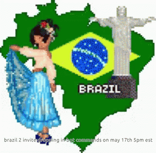 A pixelated woman dancing in front of a map of Brazil, captured in a low-resolution image.
