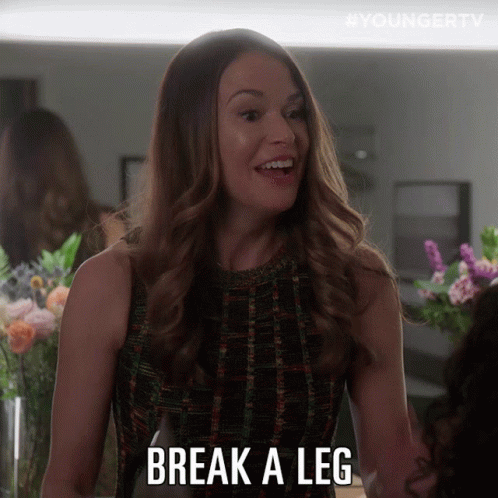 Liza Miller, portrayed by Sutton Foster, delivers an encouraging 'Break A Leg' message.