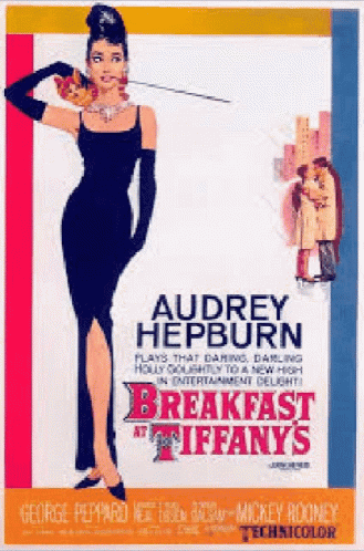 Audrey Hepburn as Holly Golightly in a classic pose for Breakfast at Tiffany's.