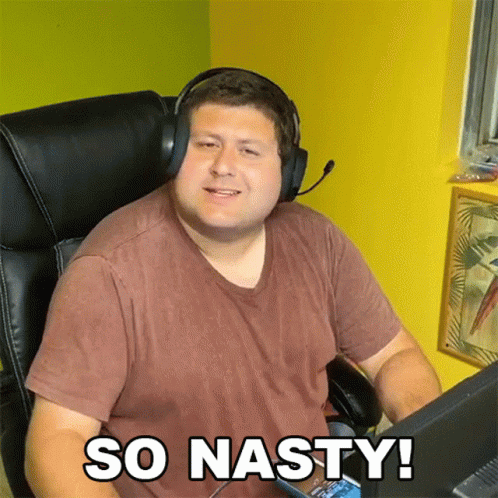 Bricknermon Poopoo Head420, wearing headphones, reacts with a disgusted expression to something on his computer, exclaiming 'So Nasty!'