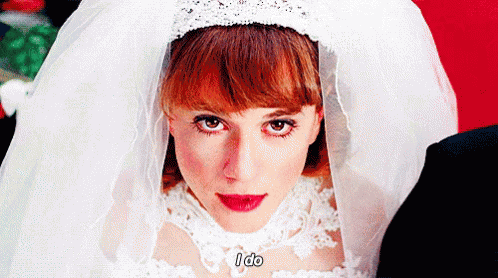 The iconic bride from Raising Arizona, Ed McDunn (Holly Hunter), says 'I do' in her wedding dress and veil.