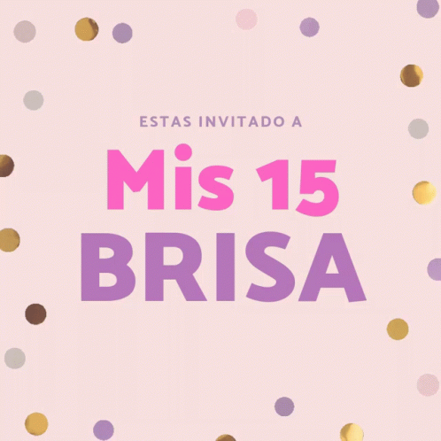 An animated invitation for Brisa's 15th birthday celebration, detailing event date, time, location, and ticket information.