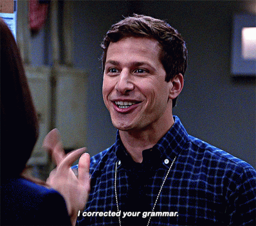 Jake Peralta (Andy Samberg) proudly states 'I corrected your grammar' in a classic Brooklyn Nine-Nine moment.
